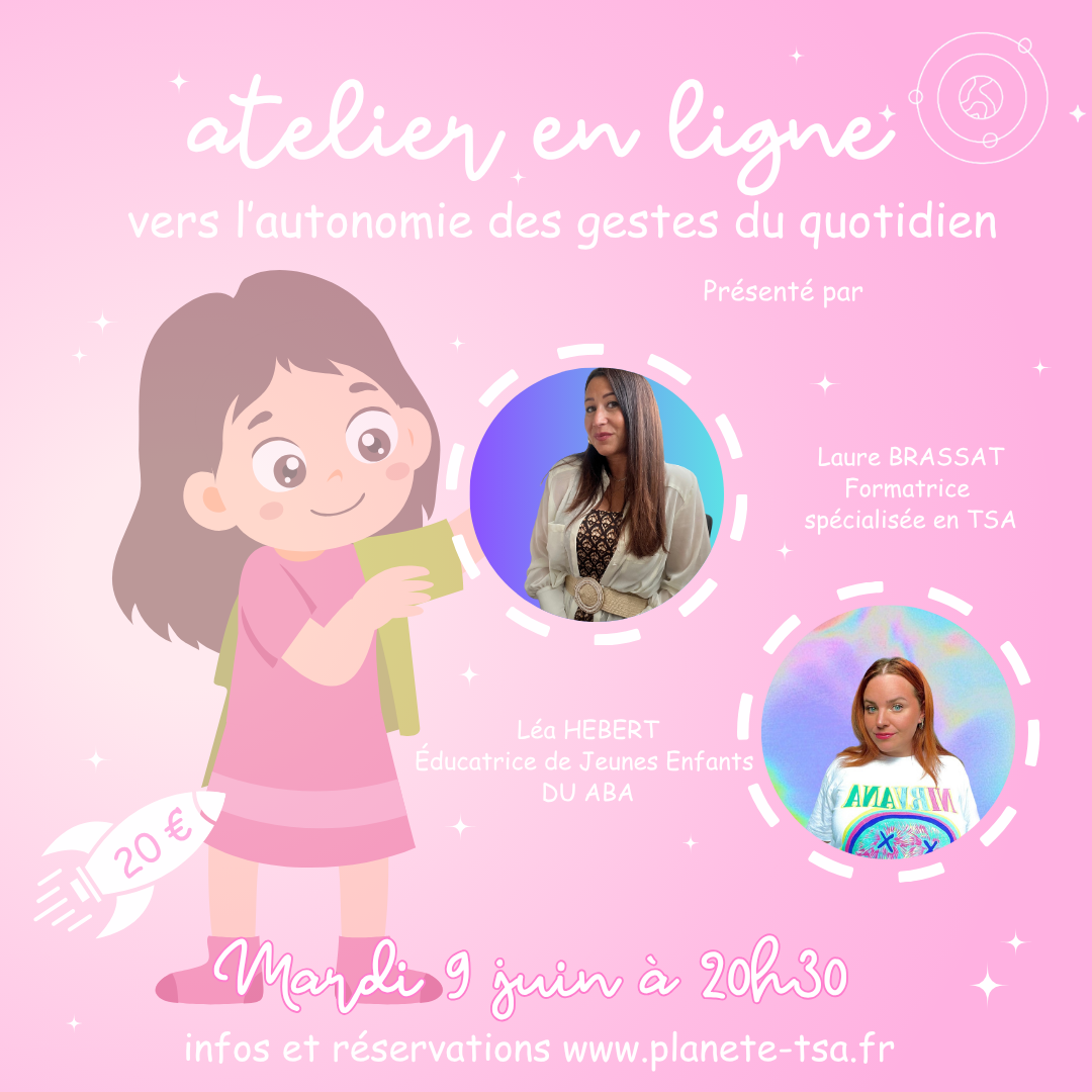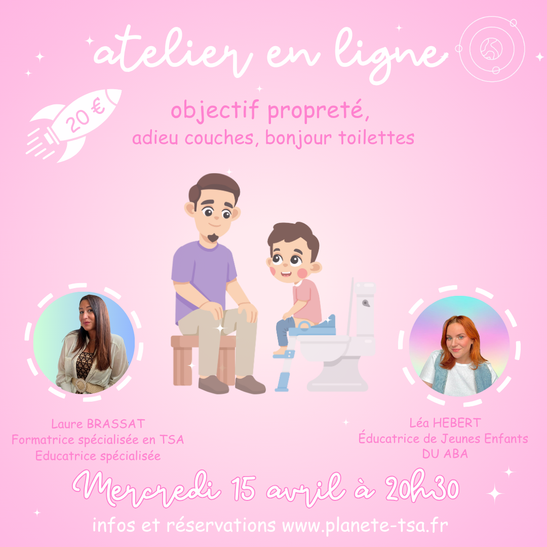 Apprendre la propreté à un enfant c’est pas évident ! Pour un enfant TSA la difficulté peut encore s’agrandir et on peut vite se décourager… Cet atelier vous permettra de mettre en place les stratégies et les outils qui accompagneront votre enfant dans l’apprentissage de cette compétence essentielle !